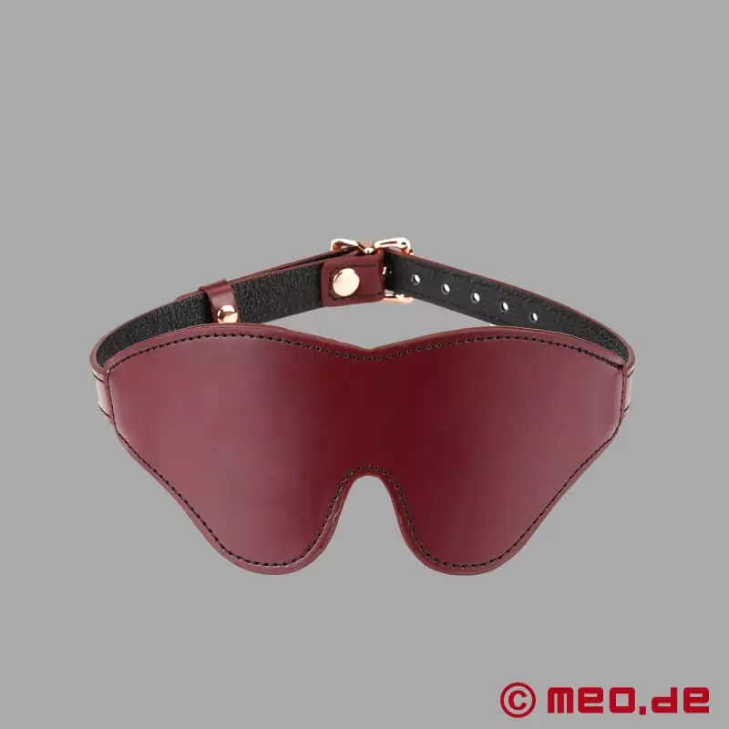 日本製レザーを使用したワインレッドの目隠しは着け心地がよく、初心者でもすぐにボンデージに没頭できる。MEO®のエレガントなノブレス・コレクションの中でも、最高の品質と絶対的な不透明度がこのBDSMのマストアイテムである。