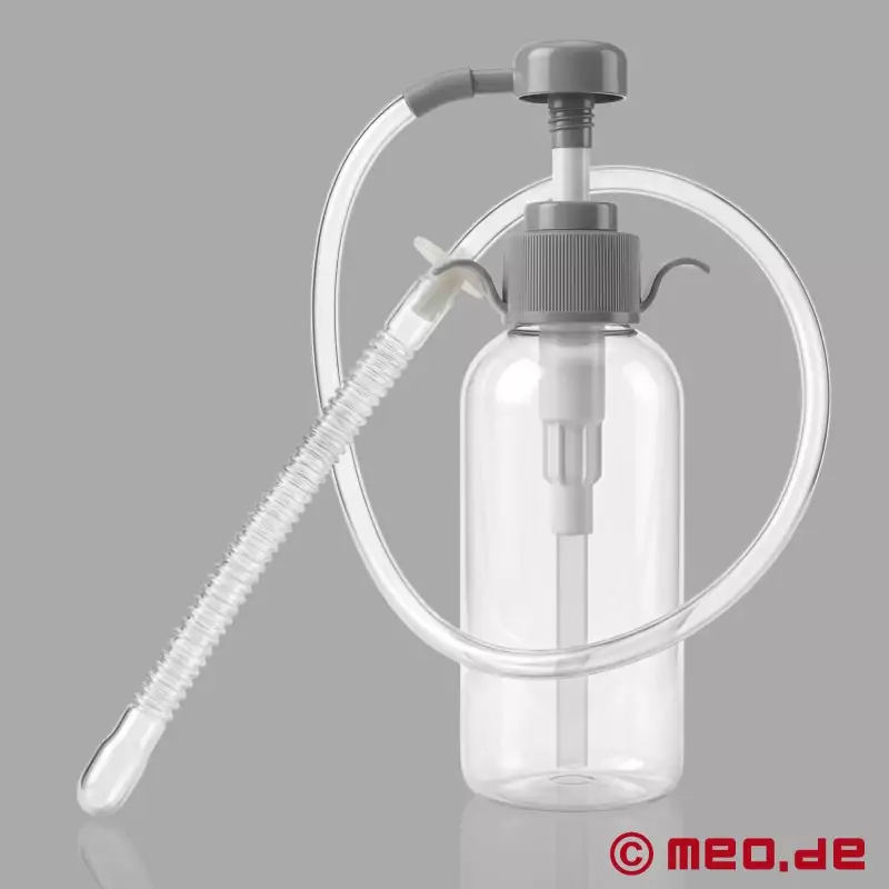 MEO®のAnalatorは、容器、ホース、浣腸ディルドを備えたポンプ装置で、300mlをたっぷり収納できます。アナレーターは、自宅や旅行先で使える実用的なアナルダウチです。ボトルにはお好みの液体を簡単に入れることができ、ポンプが作り出す真空によって、お尻の奥まで優しく、または力強く送り込むことができます。