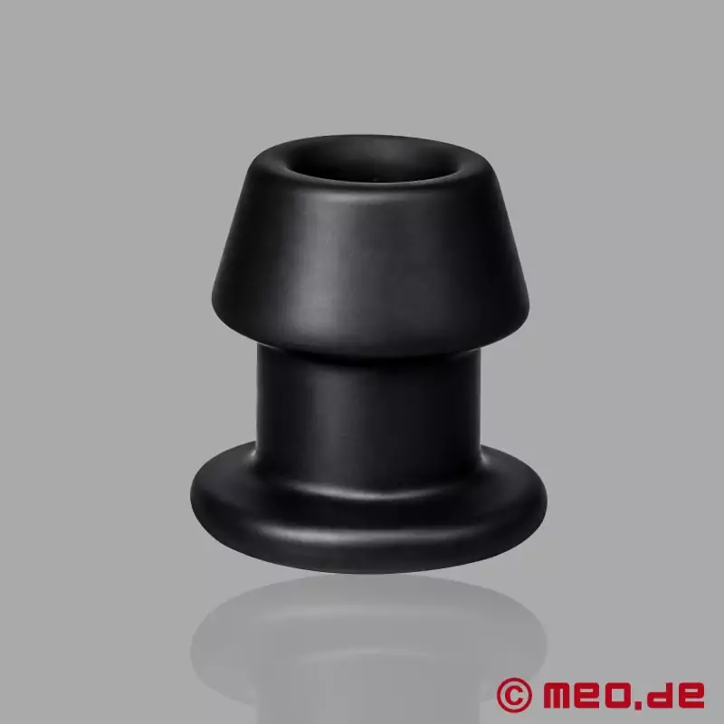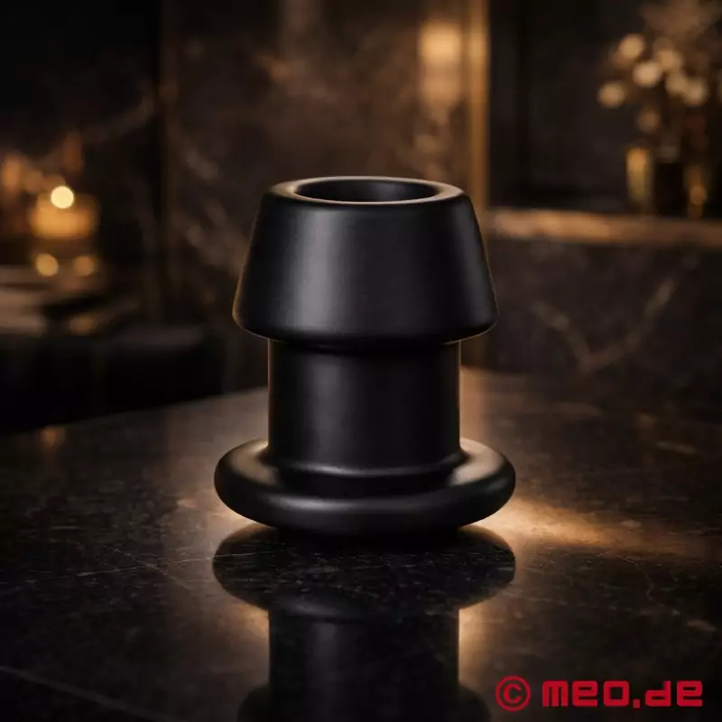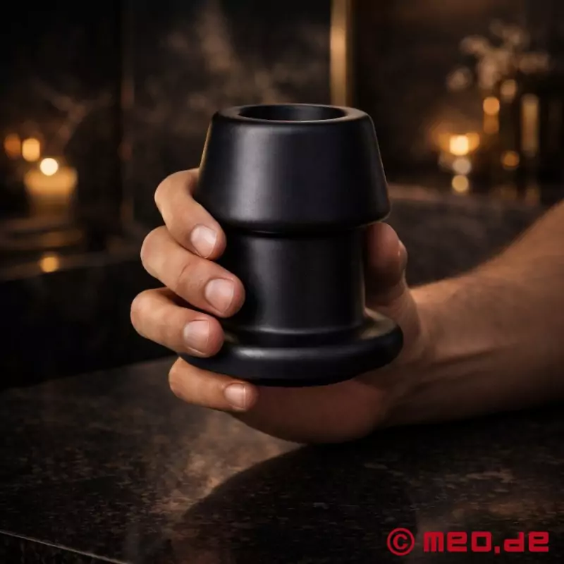 Meo hat mir freundlicherweise diesen wunderbaren Tunnel in der Größe XL zum Testen zur Verfügung gestellt. Ich habe sehr lange auf dieses Paket gewartet und als ich es dann bekam und die Dimensionen dieses Monsters sah, war ich schon etwas erschrocken) Ich muss sagen, dass ich seit 15 Jahren mit meinem Ass spiele und ich dachte, dass ein Durchmesser von 83mm ein vergangenes Stadium ist! Ich habe mich geirrt) Weil der Tunnel ziemlich steif ist, geht er sehr eng rein und drückt die Beckenknochen auseinander. Wegen seiner Form muss man sich sehr anstrengen, um den Eingang zu dehnen, damit er hineinpasst. Dann erreicht man die breiteste Stelle und spürt, wie der Plug langsam das Fleisch auseinander drückt, aber mit einem wachsenden Gefühl von Ausdehnung, Füllung und Öffnung. Normalerweise verdunkeln sich meine Augen, wenn er die letzten Millimeter passiert, und das Gefühl, wenn er an seinen Platz gleitet, wird von einem schweren Ausatmen und tiefen Atemzügen begleitet. Dein Loch gibt ein gurgelndes Geräusch von sich, wenn der Tunnel sich öffnet.