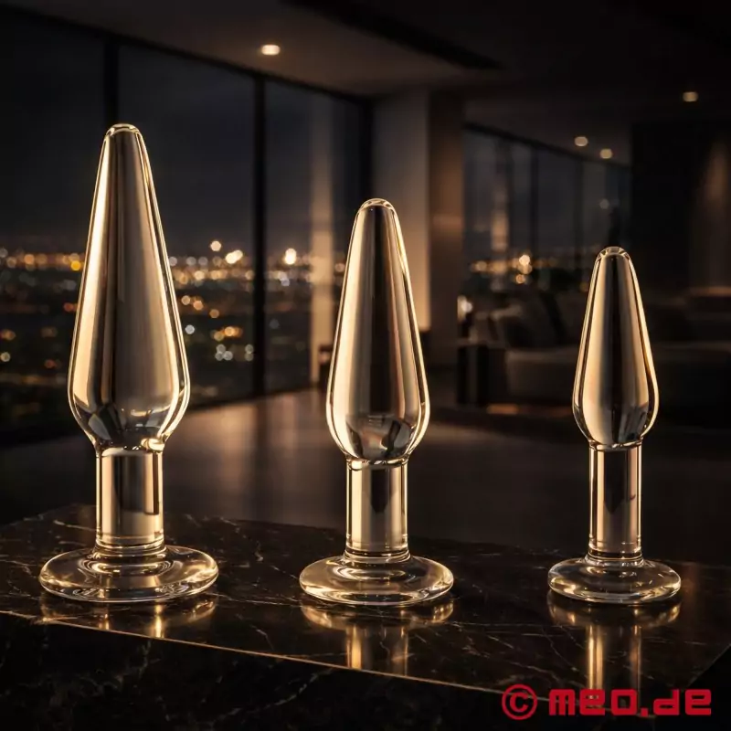 ガラスには多くの利点がある:低アレルギー性であるだけでなく、全く異なる刺激を与えることができる。スリムで円錐形のガラス製アナルプラグは、アナルでの使用を容易にし、丸い台座はアナルに深く挿入されるのを防ぎ、扱いやすくする。潤滑剤を少量垂らせば、アナルプラグはほとんどひとりでにアナルに滑り込んでいく。さらに、この贅沢な尻栓は、ひとつひとつ手作りで、継ぎ目がなく、絶対に安全で、特に魅力的なパッケージに入っている。