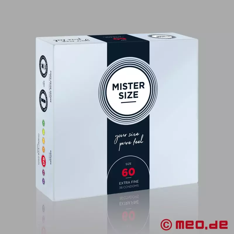 完璧なフィット感で、よりセンセーションを、より安全に。MISTER SIZE™コンドームには7種類のサイズがあり、標準サイズやXXLサイズよりも確実にフィットする。