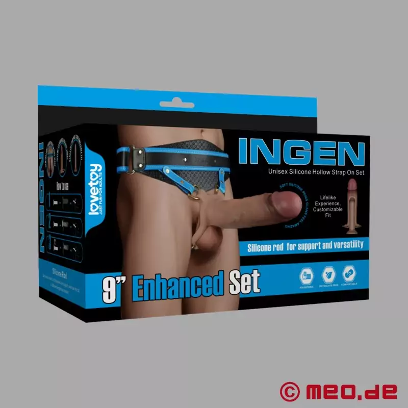 中空ディルド(23cm)付きの超リアルなストラップオン - MEO®の革命的ストラップオンセット。