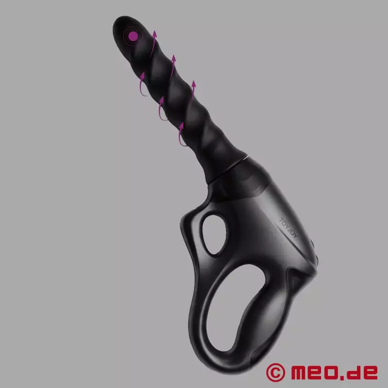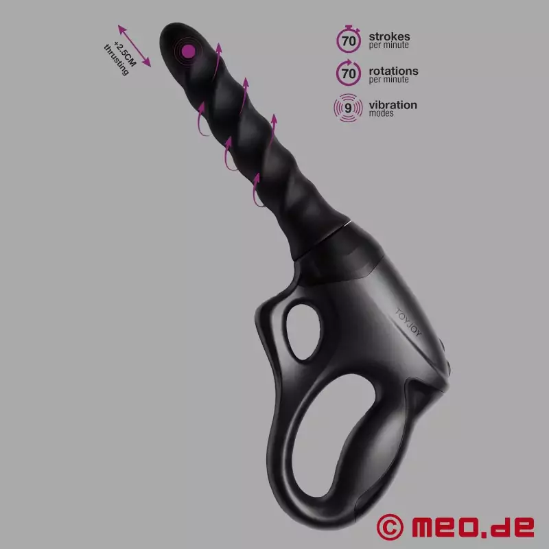 特徴的なピストルグリップは、手にしっかりとフィットし、強烈な刺激を与える。膣でもアナルでも:特許取得済みの360°回転するシャフトは、渦を巻くような "スクリュー "感覚を生み出し、それは毎秒増加する。さらに、最大2.5cmの深さのスラストと、1分間に最大70回のスラストと最大70回の回転が可能。その結果、深くて長持ちする刺激が一定に保たれ、強さが増していく。