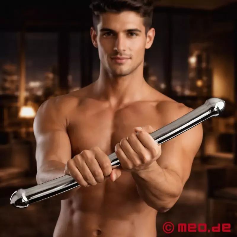 F*ckRod™は、ステンレス製の頑丈なダブルディルドで、一人でもカップルでも、妥協のない刺激、ピンポイントの圧力、強い絶頂感を与えてくれる。重い重量、鏡のように滑らかな表面、2つの膨らんだ亀頭のおかげで、すべての動きがGスポットや前立腺にフィルターなしで伝わる。そのため、当社の金属製性具の中で最も強烈なもののひとつとなっている。