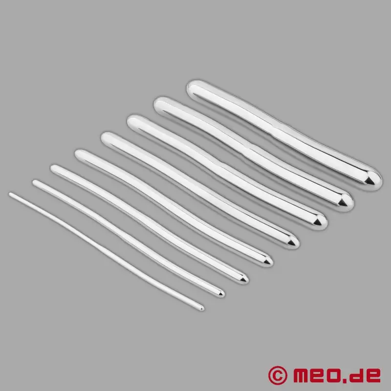 MEO®の高品質ヘガー・ダイレーター8点セットで、比類なく強烈で息をのむような刺激を体験しよう。医療用ステンレス鋼製の完璧な形状のダイレーターは、衛生的で非常に快楽的。このセットは、官能的な発見と尿道のコントロールされたストレッチのための究極のBDSMアクセサリーである。