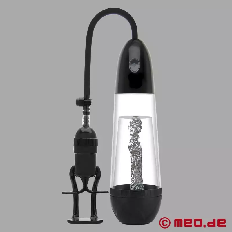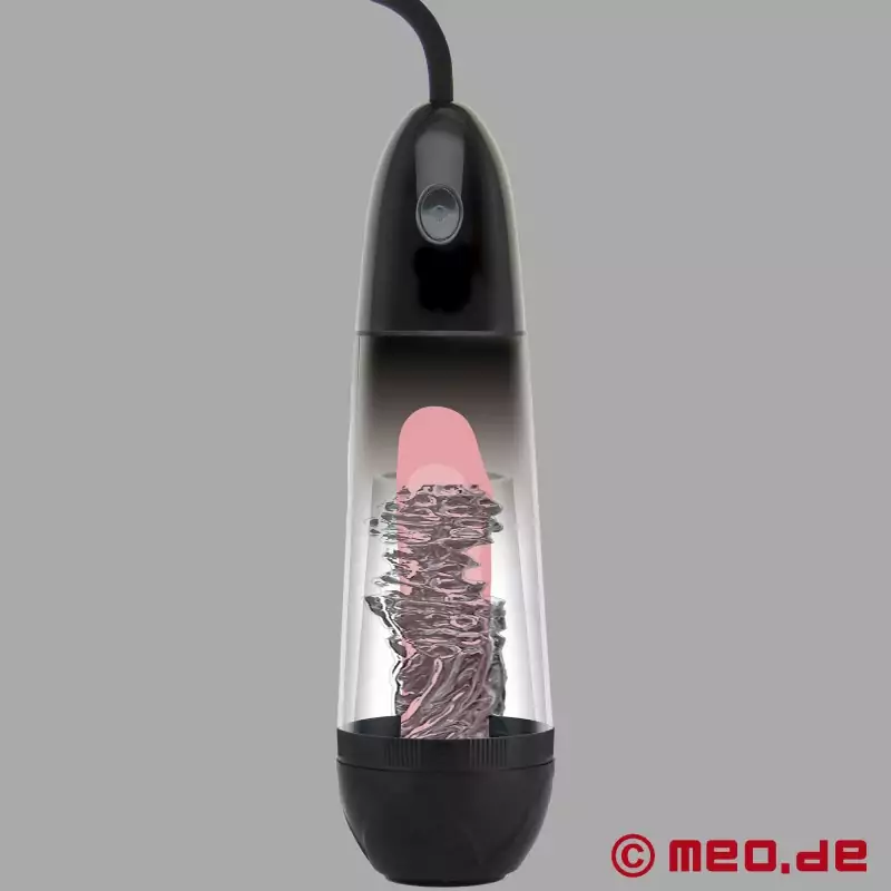 透明なバキュームシリンダー、構造化された柔らかいペニススリーブ、コントロール可能なバキュームが、見た目と感触の強烈なコンビネーションを保証する。