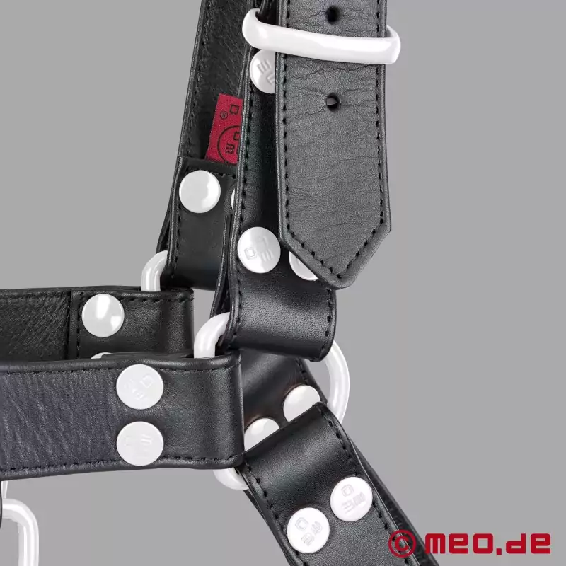 男性用レザーハーネス - ブラック/ホワイト - FetishGear™ by MEO® (フェティッシュギア)