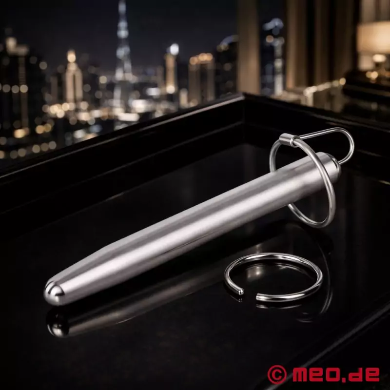 従来のペニスプラグとは対照的に、Chubby™ペニスプラグはピアスで固定するのではなく、ペニスプラグに亀頭リングを装着して固定する。これにより、しっかりと固定されると同時に、亀頭頂部にさらなる圧力がかかる。これによって、息をのむような外観が生まれるだけでなく、非常に強烈な装着感が得られ、あらゆる動きが目立つようになる。