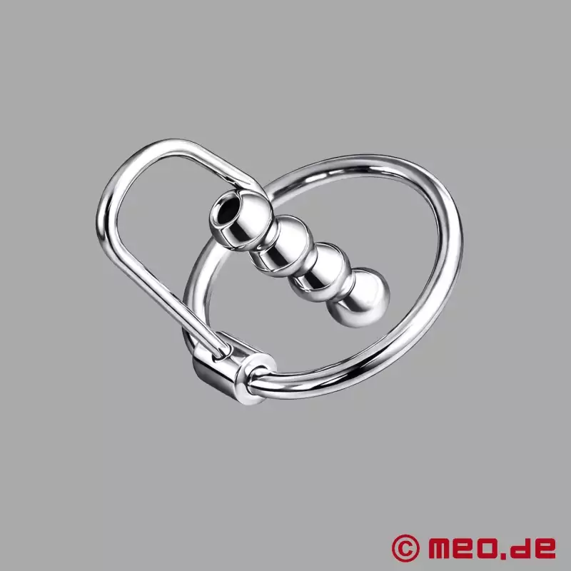 医療用ステンレス鋼製のこの亀頭リングは、その特殊な形状により、しっかりとフィットする。ペニスプラグは、尿道のトレーニングと持続的なストレッチに使用される。好みに応じて、長時間装着することもできる。ペニスプラグには、亀頭リングを外さなくても排尿や射精ができるよう、連続した開口部を設けている。
