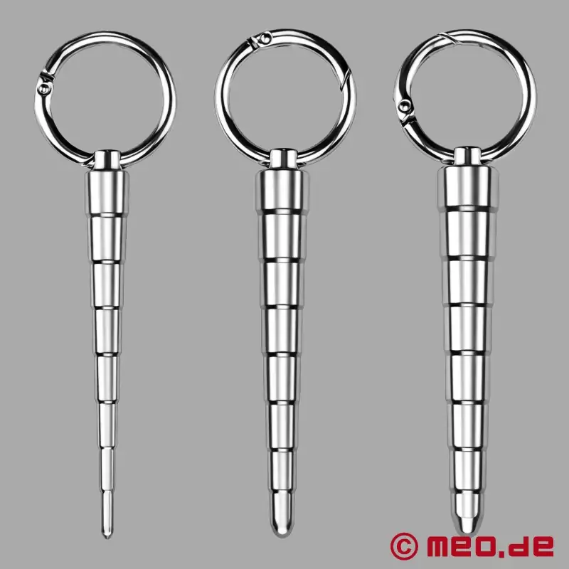 これらのペニスプラグはそれぞれ長さ約123mmで、徐々に安全に拡張できるように直径が大きくなるように分割されている。尿道拡張テクニックの初心者から上級者まで、MEOでは誰もが自分に合ったペニスプラグを見つけることができる:
