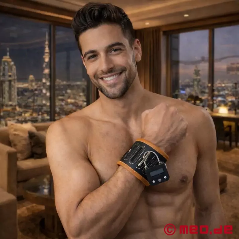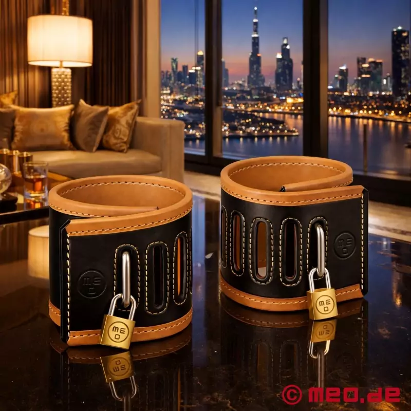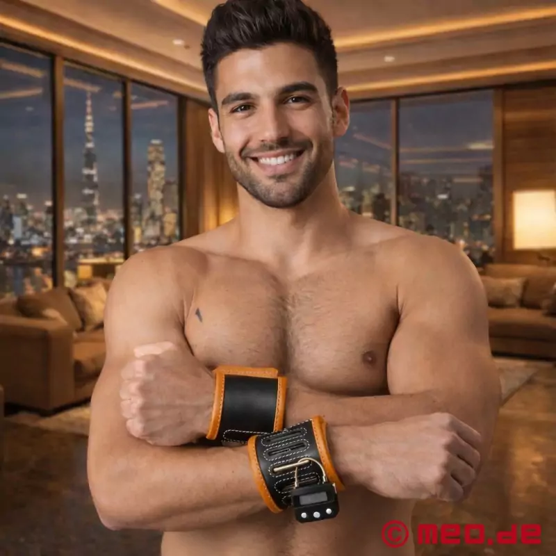 この手錠と足錠は、手首または足首に装着し、金属クリップで固定し、南京錠、ケーブルタイ、または革新的なメオボンド・デジタル・タイムロックでロックすることができる。メオボンド・タイムロックを使えば、拘束時間を最大100時間まで正確に設定することができる。この拘束具は、長期の緊縛シナリオやセルフ・ボンデージに理想的である。