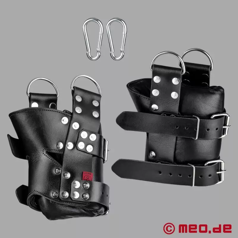 次のボンデージ・セッションが、文字通り新たなレベルに到達するのを体験しよう。MEO®のサスペンション・ボンデージ用パッド入り足枷は、まさにそれを提供する:最大の安全性、究極の快適さ、そして妥協のない固定。倒立、吊り緊縛、長時間の固定など、この贅沢な足枷(レザー)を使えば、あなたのパートナーは安全に吊るされるだけでなく、非常に魅力的に見える。