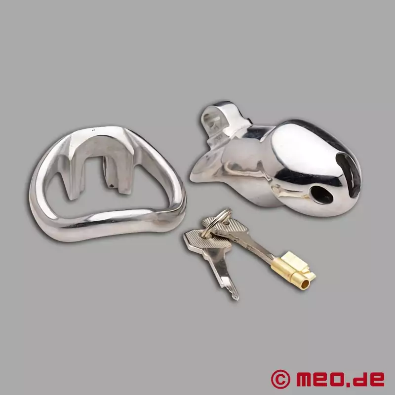耐久性に優れたステンレス鋼は、男性の解剖学的構造に完璧に適合し、絶対に脱走しないと考えられている。先端のスリットで排尿ができ、2つの通気口で閉じた貞操帯の中の空気が循環する。