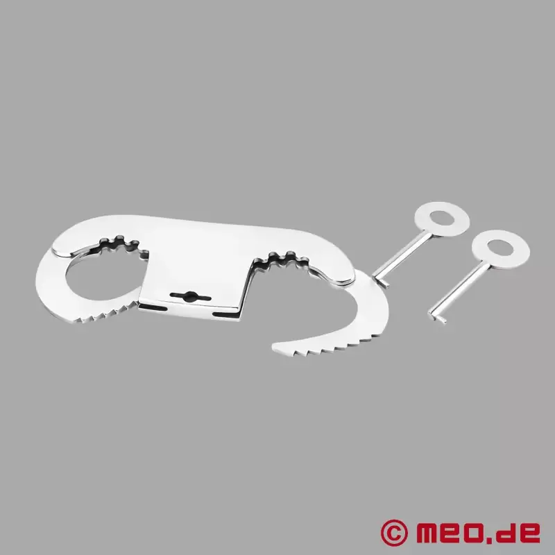サムカフは、親指に手錠をかけるための特別な金属製の拘束具である。足の指に手錠をかけることもできる。丈夫なステンレススチール製で、長持ちし、摩耗に強い。