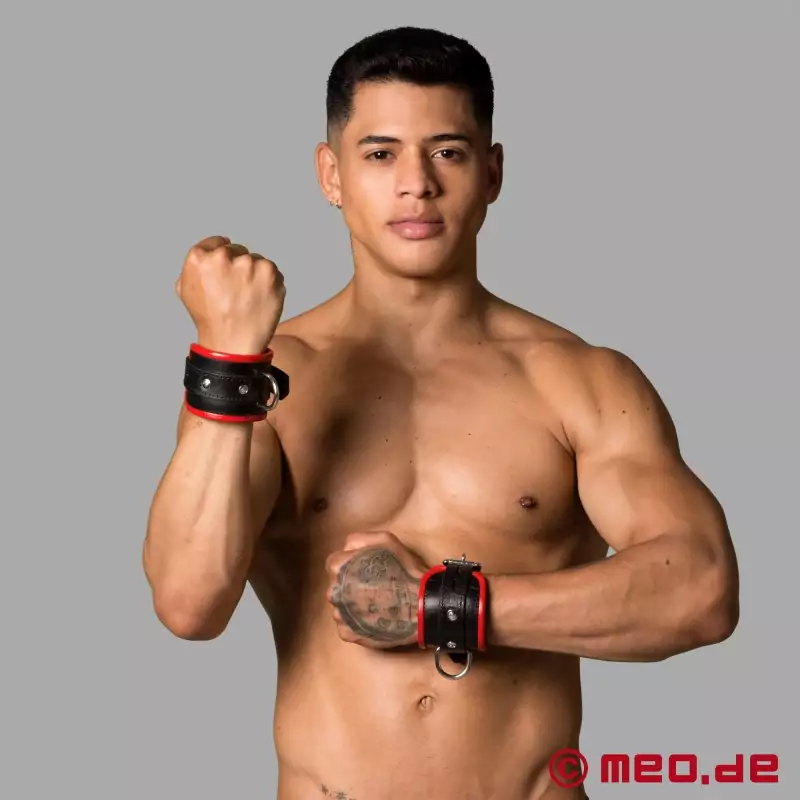 MEO ®のアムステルダムボンデージコレクションの 手錠には、厳選された牛革のみが使用されている。
