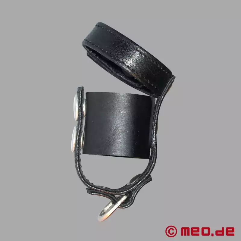 睾丸ストレッチャー下部の一体型Dリングにより、追加ウエイトを取り付けることができ、睾丸ストレッチや陰嚢ストレッチをより強力にすることができる。また、リーシュを取り付けることもできる。高品質のステンレス・スチール製バックルとリベットが全体を引き締め、品質と細部へのこだわりを証明している。