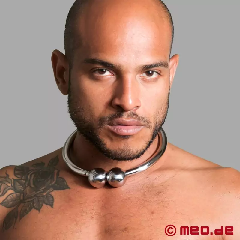 I love this collar, its quality is exceptional as with everything that I have ordered from Meo.de. I love the fact that the magnets make it both easy to fit but they also hold it securely in place. I have had numerous people ask me where I got it from and they love its look. This is a great collar for any submissive or just to wear as a statement. I have the smaller size and it is the perfect fit for me and I love it. I can highly recommend it to anyone. Wearing this collar gives this submissive a huge sense of belonging and I love how it looks. It's quite hard to remove, just as it should be of course. The magnetic orbs do a good job of sealing you inside its cold hard grip.