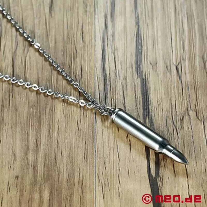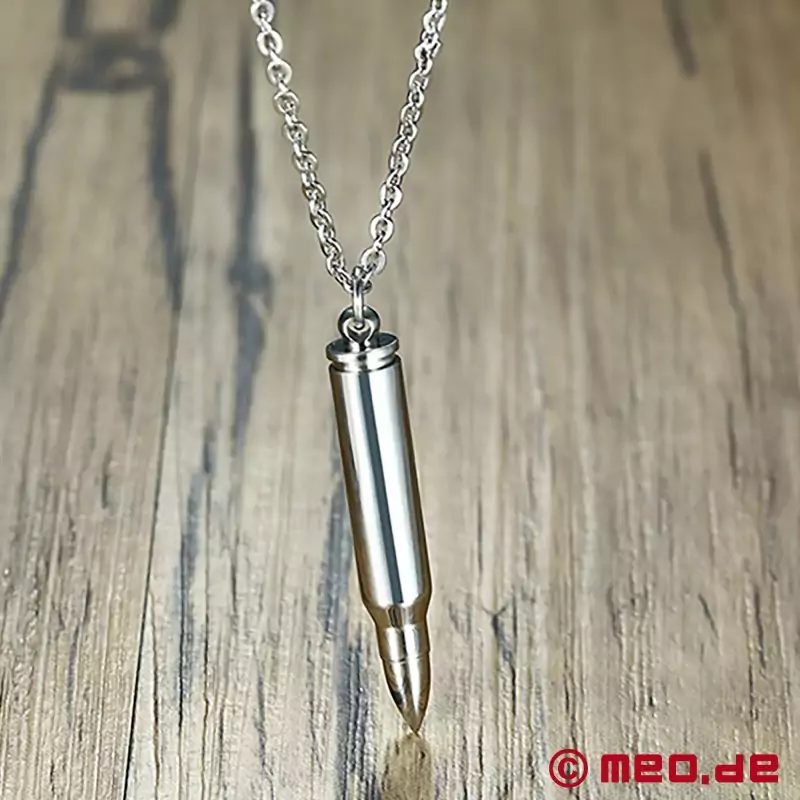 カートリッジの形をしたペンダントは、その男性的な外観で人目を引くこと請け合いだ。好奇心や興味をそそる視線を集めることは間違いないが、秘密のコンパートメントを疑う人はいないだろう。