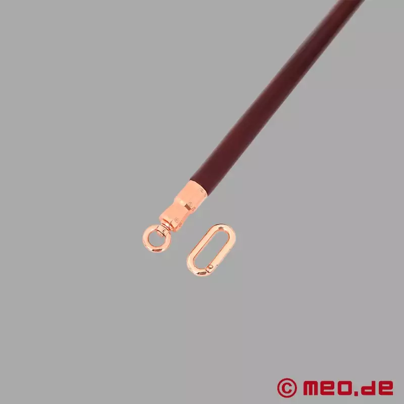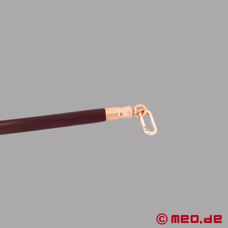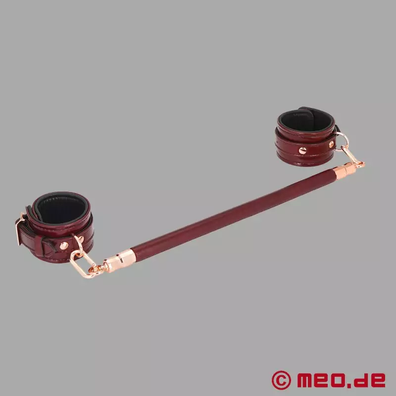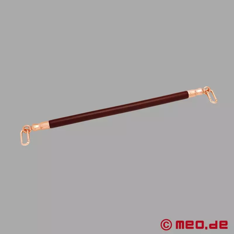 プロフェッショナルによって開発されたエレガントなボンデージ・スプレッダー・バーは、超硬質ユーカリ材から作られ、日本製の牛革で覆われている。ローズゴールド色の金属製エンドピースにはそれぞれカラビナが取り付けられ、足枷や足首をスプレッダーバーに接続することができる。世界最高峰のBDSMスタジオでも使用されているMEO®のプロ仕様の高級スプレッダー・バー(ビー・ディー・エス・エム)。