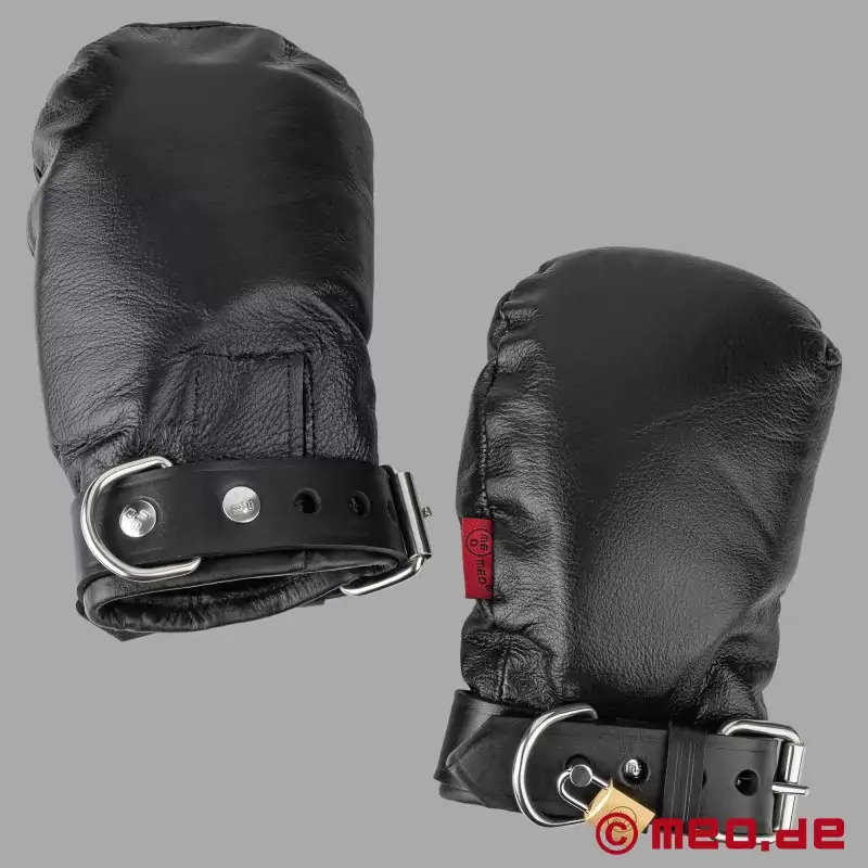 MEO® BDSMエディションのロック可能な「フィスト・ミッツ」。「Fist Mitts」は最高級の革で作られたミトンだ!