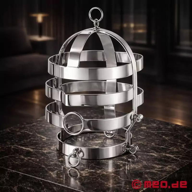 Der Stahl glänzt wirklich schön und ist perfekt für Sessions, Shootings oder auch als Deko geeignet. Ich hänge ihn an den Suspension Point an meiner Decke und sperre dann Sub hinein. Ein wirklich sehr erregender Anblick ;)