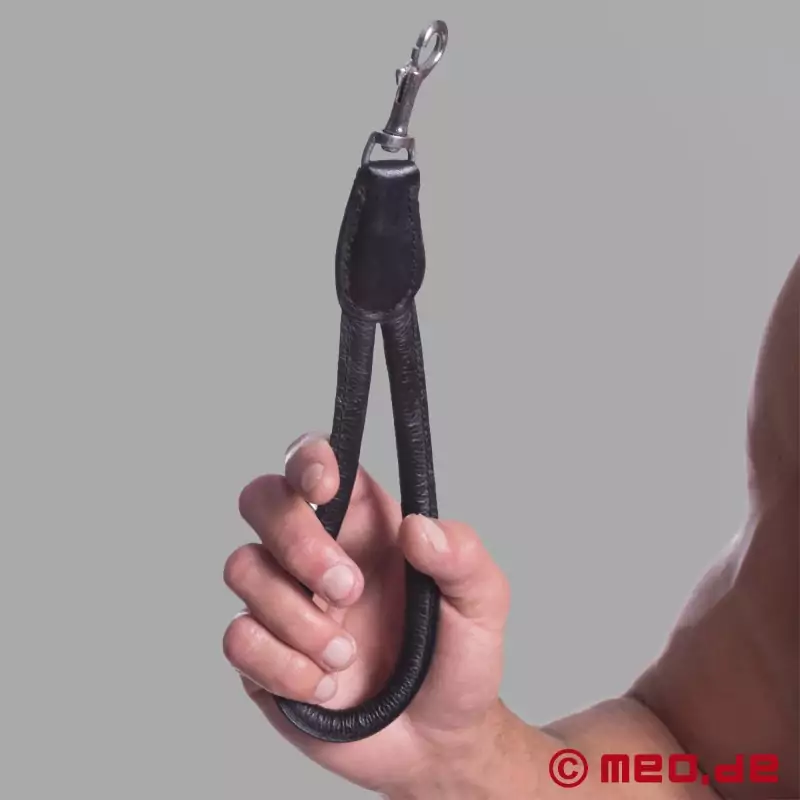 MEO®の短いボンデージ・リーシュは、親密さとコントロールが最優先されるBDSMセッション(セックスの最中や夜の公園を一緒に歩くときなど)に最適なアクセサリー。リーシュの長さがコンパクトなので、服従者はいつでも手の届くところにいる。リストストラップが内蔵されているため、リードは扱いやすく、長時間のセッションでも快適に持つことができる。