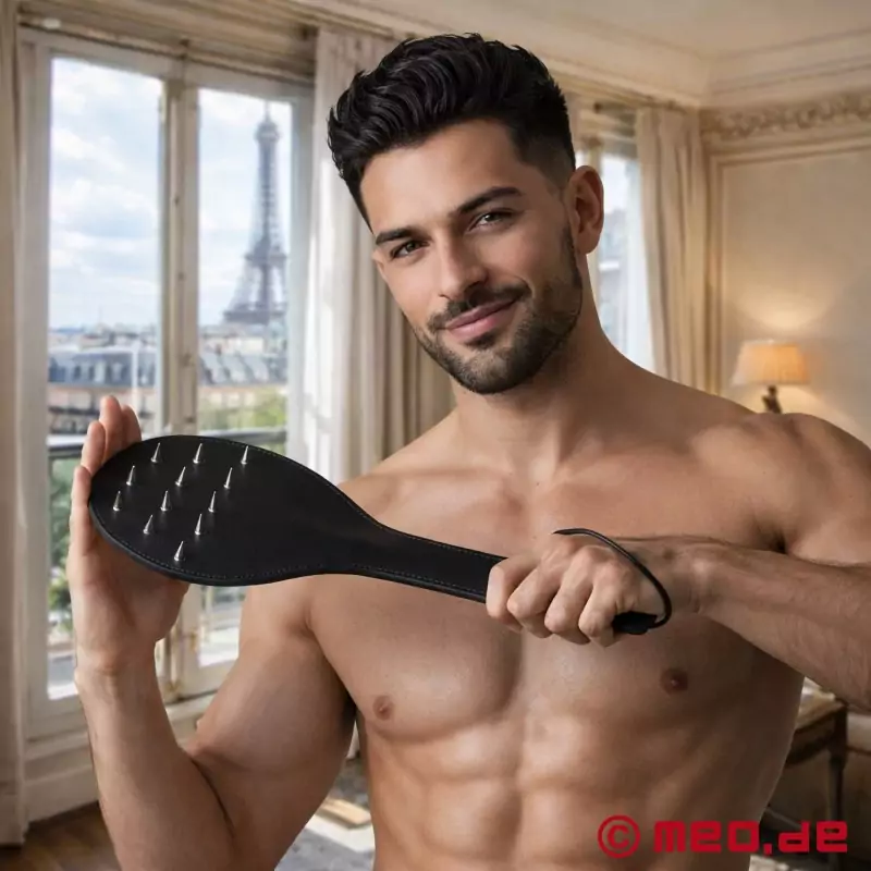 MEOのMauvais GarçonシリーズのBDSMパドル "SpikeSway "は、ドイツのブランドで最も人気のあるパドルである。その丸い形とクラシックなデザインは、時代を超越しながらもインパクトプレイに効果的な道具となっている。全長38cm、パドル幅16cmとゆったりとした打球面は、初心者から上級者まで幅広く使える。
