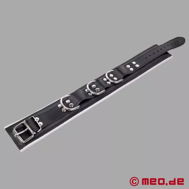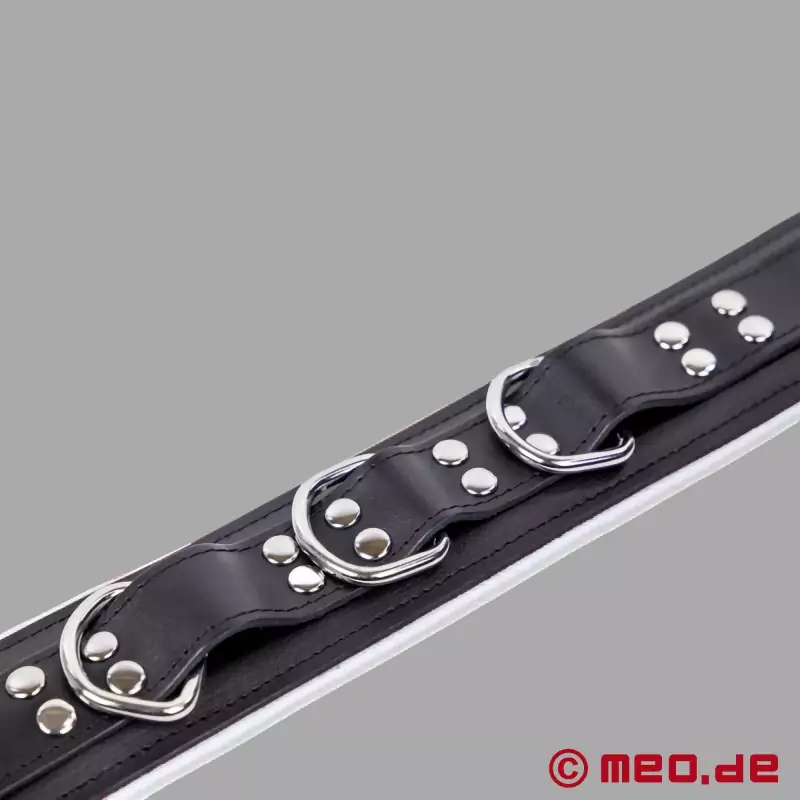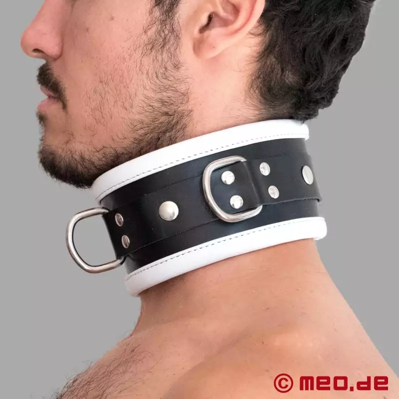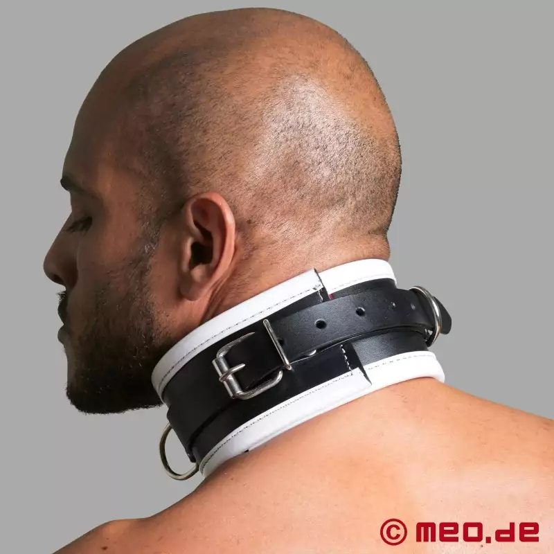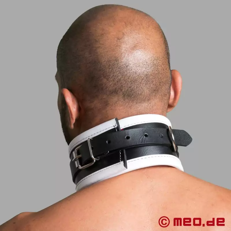 レザー・ボンデージ・カラー - ブラック&ホワイト - ドイツMEO®社のディスティンクト™シリーズのBDSM用首輪。