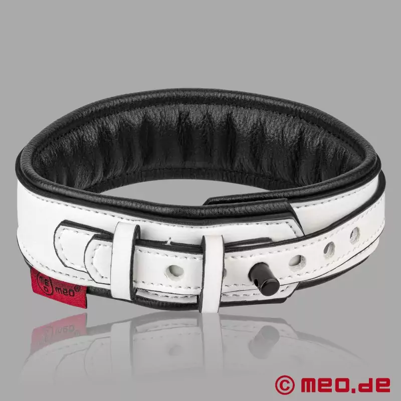 このボンデージ・カラーは、首周りに合わせて個別に調節でき、ロックピンにより南京錠(または当社の電子時間ロックMEOBOND)でロックすることもできる。時代を超越した印象的なデザインの首輪は、どんなBDSM・セッションにもエレガントな印象を与える。Y字型の調節可能な3点式コネクターや、Veneziaコレクションのガイドリーシュを、Dリングにすぐに取り付けることができる。つまり、あなたの創造性に制限はないのだ。