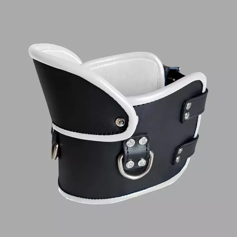 Posture Collarがあなたに提供できる無限の多様性と官能性を発見しよう!黒と白のレザーでできたロック可能なポスチャー・カラーで、BDSMセッションに新しい次元の服従を与えよう。タイトなフィット感と頑丈なレザーで、この首輪は着用者の頭と首が服従の姿勢を保つことを保証する。黒と白のカラーは、当社のレザー・ポスチャー・カラーに特別なエレガンスと美的感覚を与え、官能的なBDSM(ビー・ディー・エス・エム)ゲームに最適である。当社のレザーポスチャーカラーを使えば、服従と支配を新たなレベルに引き上げ、パートナーとのより深いつながりを築くことができる。