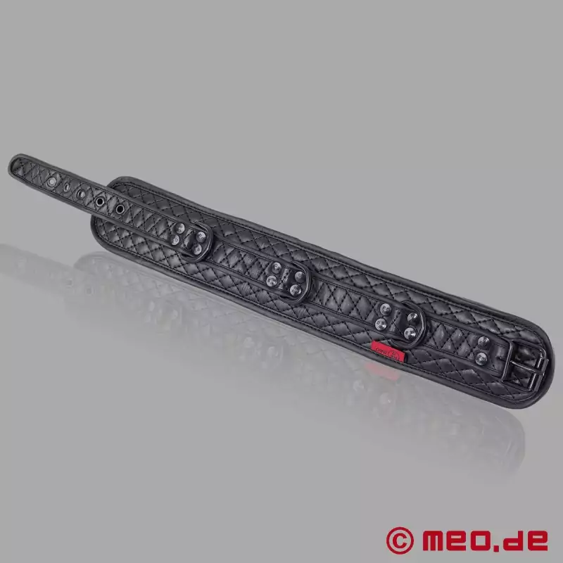 最高のラグジュアリー:MEO®のBlack Diamond™シリーズの首輪は、あらゆる首周りに対応するカスタマイズ可能なサイズと最高の快適さを兼ね備えている。高品質の牛革パッド、安定性を高めるダイヤモンドステッチ、ブラックコーティングのバックル、Dリング、リベットが、調和のとれたミニマルな外観を作り出している。このBDSM(ビー・ディー・エス・エム)レザー・カラーは、細部に至るまで考え抜かれており、あなたの緊縛セッションが、見栄えだけでなく、気持ちの良いものになるよう配慮されている。