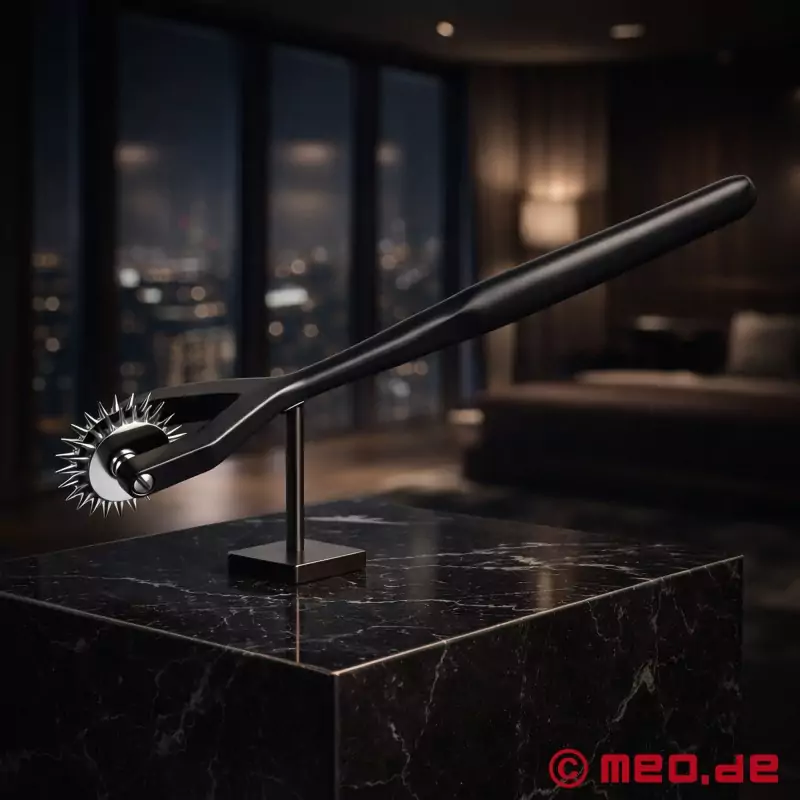 Dr Sado™のワーテンベルグ・ホイール・ニューロX²は、無垢の金属とスタジオ品質の頑丈な黒色ストーブ・エナメル仕上げの表面による高品質な仕上がりが印象的だ。このBDSMツールは、ユニークなデザインと最大限の効果を兼ね備え、医療ロールプレイ、古典的なディシプリン、官能的な教育シナリオなど、要求の厳しいセッションに最適である。